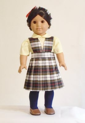 Bibbed Skirt American Girl Doll School Uniform in Dark Navy & White Plaid 8B