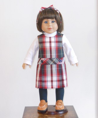 Dropped Waist Jumper American Girl Doll School Uniform in Red Plaid 40. Uniform is shown on the 18" My Twinn Doll