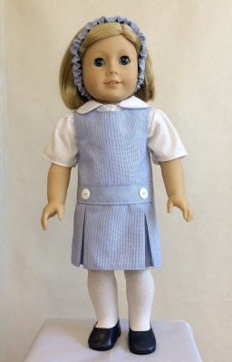 Dropped Waist Jumper American Girl Doll School Uniform in Pincord Blue